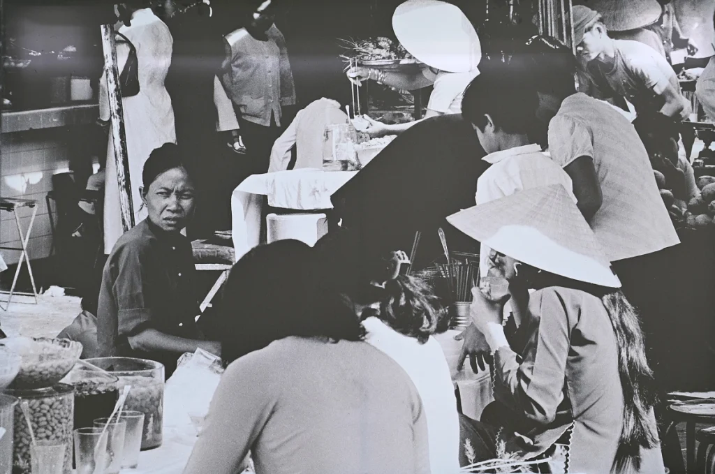 The exhibition also presents black-and-white and color works by Daniel Roussel and Lily Franey depicting postwar daily life in Vietnam.